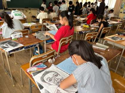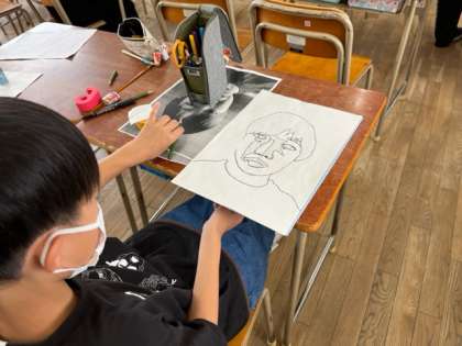 7月11日(月)1時間目、6年1組は図工で版画の下絵を描いていました。