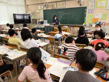 7月13日(水)2時間目、4年2組は、新聞を作っていました。社会の教科書や浄水場を見学したこと、浄水場でいただいたパンフレットを使って新聞を作るようです。