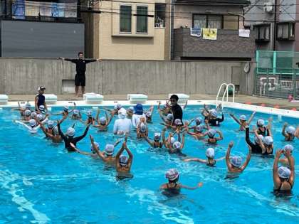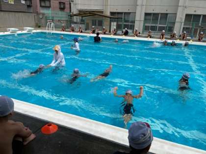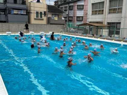 7月13日(水)2時間目、1年生は体育でプール水泳でした。水慣れの後、ふしうきの練習をしていました。