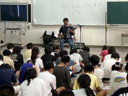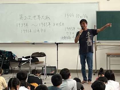 7月14日(木)1・2時間目、6年生は平和学習を行いました。地域にある三線教室の先生に沖縄戦の悲惨な状況のお話を聞きました。子どもたちにはかなりショックなお話だったようです。