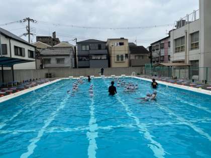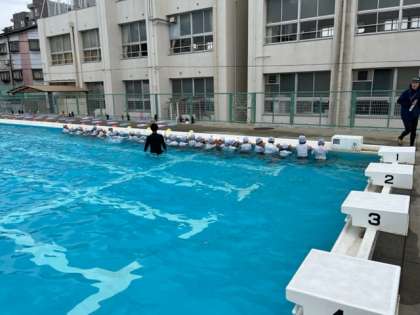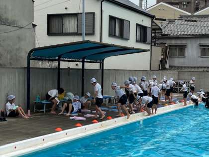 7月15日(金)3時間目、2年生は着衣泳をしました。体操服を着て水に入ったとき、子どもたちは「重い」と言っていました。