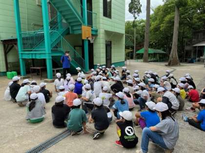 避難訓練 早く集合できたので、キャンプファイヤーの歌の練習をしました。