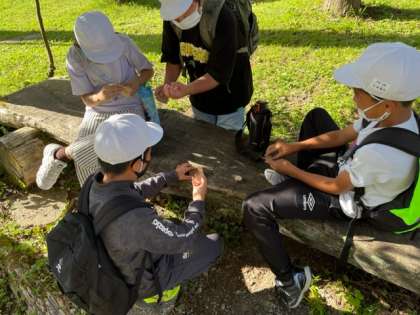 ウッドペンダントを作りながらメスのクワガタを見つけて遊ぶ人もいます。