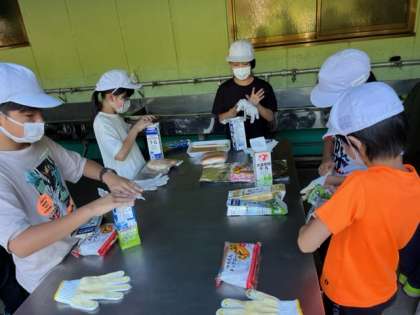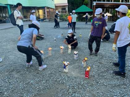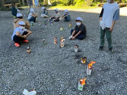 ?カートンドッグを作っています。「もえろよもえろよ...」を歌う人もいます。出来上がりが楽しみです。