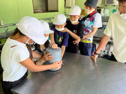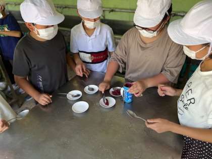 ふたを開けた瞬間、歓声があがりました。シャーベットをおいしくいただきました。ひたすら転がした結果、甘くて冷たい物になりました。
