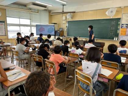 8月26日(金)4時間目、6年2組は算数で「次の学習のために」の問題を考えていました。五角形や六角形の対角線をすべてかいた時の本数を調べていました。