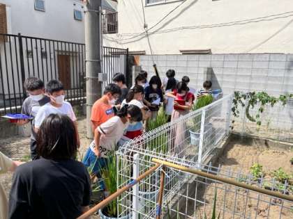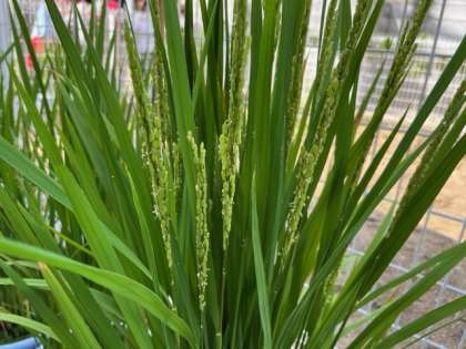 8月26日(金)5時間目、6年2組は総合で稲の生長を観察していました。稲に穂が出てきました。