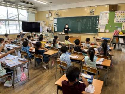 8月29日(月)1時間目、1年1組は国語で漢字の「山」を学習していました。