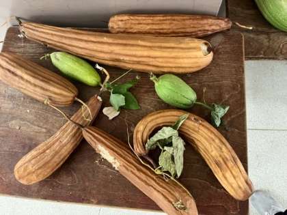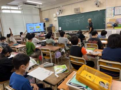 9月1日(木)3時間目、5年2組は理科でヘチマのおばな、めばなのつくりを確かめていました。