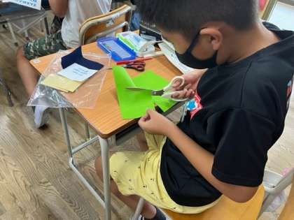5年1組 家庭科 公開日 2022/09/01 更新日 2022/09/01 5年生 9月1日(木)3時間目、5年1組は家庭科で小物づくりをしていました。フエルトを切って、小銭入れを作る子がいました。 いいね(0)
