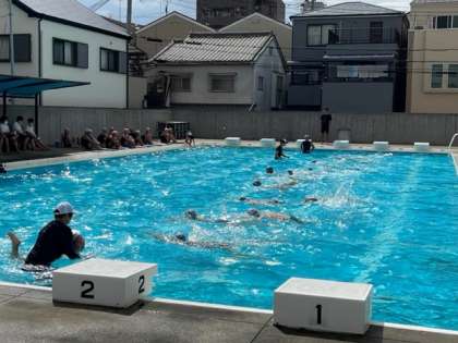 9月1日(木)5時間目、5年は体育でプール納めをしていました。平泳ぎの練習をしていました。