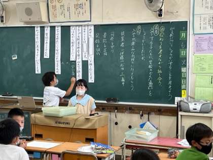 9月6日(火)4時間目、4年1組は国語で、学校について紹介することを考えていました。