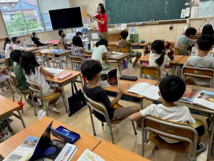 9月6日(火)5時間目、2年1組は生活科でザリガニについて図鑑等を使って調べていました。