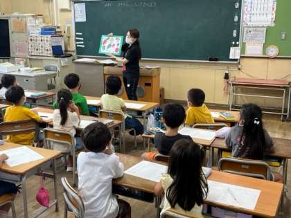 9月6日(火)5時間目、1年1組は栄養指導で好き嫌いなく食べることの大切さを学習していました。