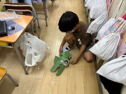 9月8日(木)1時間目、2年2組は生活科でおもちゃづくりをしていました。