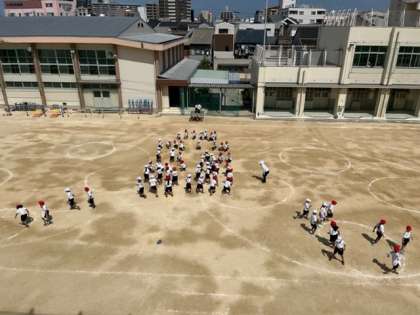 9月15日(木)2時間目、1年生は運動場でダンスの練習をしていました。
