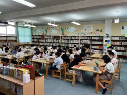 9月16日(金)2時間目、5年1組は図書室で本を読んでいました。