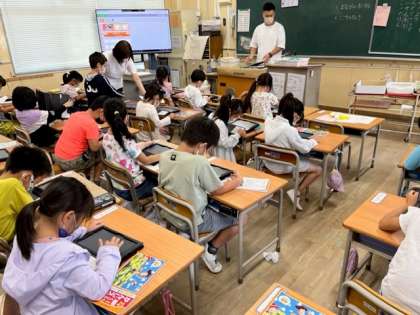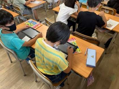 9月20日(火)1年2組はタブレットを使って「心の天気」の入力をしていました。子どもたちは操作を覚えるのが早いですね。