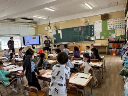 9月21日(水)3時間目、1年1組は国語で「サラダで げんき」を学習していました。出てきた順に動物が何をしたか読み取っていました。