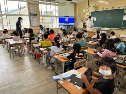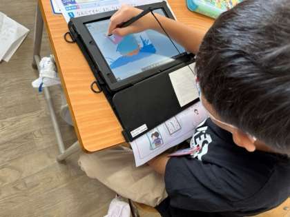 9月22日(木)1年2組は算数でテストをしていました。テストを早く終えた人から、パソコンでお絵描きをしていました。子どもはすぐにパソコンを使いこなせるようになっているように思いました。