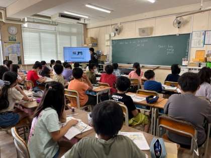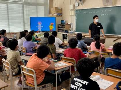 9月26日(月)1時間目、5年2組は外国語科で「What time do you 〇〇?」を学習していました。