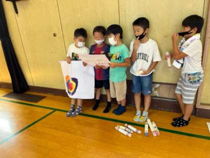 9月26日(月)1時間目、2年2組は生活科で「おもちゃランド」の準備をしていました。1年生役をつくって、1年生相手に遊びの説明の練習をしている班がありました。
