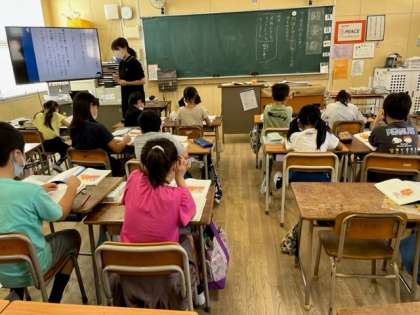 9月26日(月)1時間目、3年2組は国語で「サーカスのライオン」の感想をかいていました。