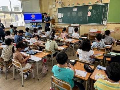 9月27日(火)1時間目、1年2組は国語で漢字の「花」「文」「音」を学習し練習していました。