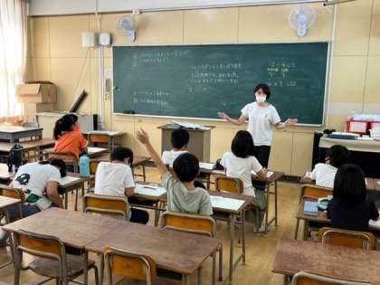 9月28日(水)2時間目、3年1組は算数で学級を2分割し少人数で学習していました。あまりのあるわり算の答えのたしかめ方を考えていました。