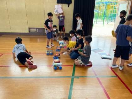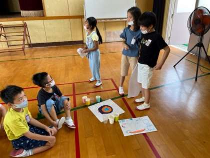 9月28日(水)3時間目、2年2組は1年2組を招待して「おもちゃまつり」をしていました。自分たちが作ったおもちゃで1年生を遊ばせてあげようというものです。ルール等1年生に伝わるように説明できたでしょうか?