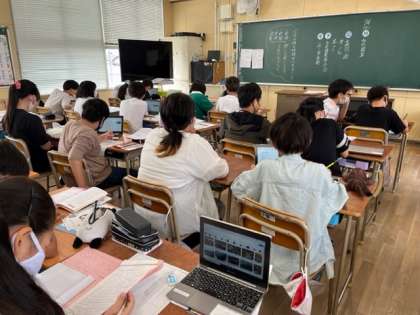 10月4日(火)1時間目、6年2組では「平和新聞」を作っている子がいました。6年生は、今日卒業アルバム用の写真を撮影するので、自分でできることを各自がしているように見えました。
