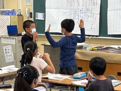 10月6日(木)1時間目、3年1組は「サーカスのライオン」の言葉の意味を確かめていました。「ぶちやぶる」の意味を二人組で動作で表していました。とても分かりやすかったです。