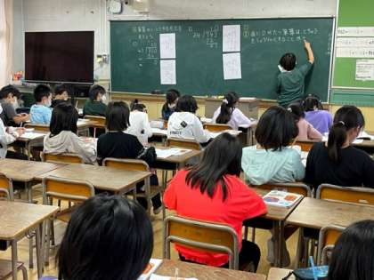 10月7日(金)2時間目、4年生は算数で習熟度別2学級を3分割にして学習していました。