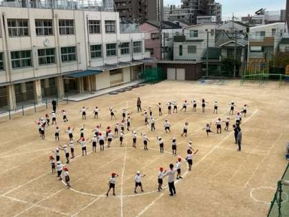 10月12日(水)3時間目、2年生は体育で、隊形移動しながら演技を練習していました。笑顔で踊っている子が多いのが印象的でした。