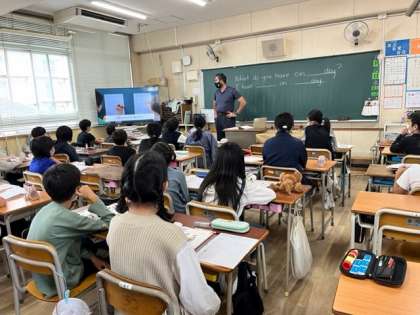 10月12日(水)3時間目、5年1組は外国語科で各曜日の時間割を英語で尋ね合っていました。
