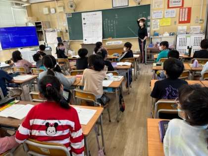 10月13日(木)1時間目、3年1組は理科で「かげと太陽の動き」を学習していました。かげの動きの観察と記録について話し合っていました。