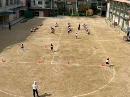 10月13日(木)3時間目、1年生は体育でリレーの練習をしていました。