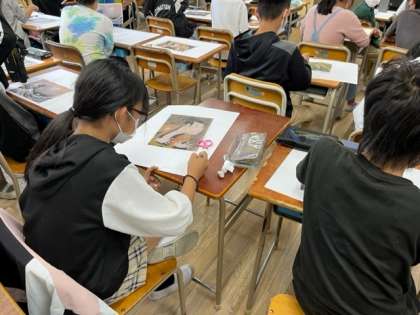 10月17日(月)1時間目、6年1組は図工で浮世絵の模写をしていました。