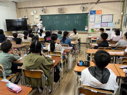 10月17日(月)1時間目、5年1組は国語で「大造じいさんとがん」の新出漢字を学習していました。