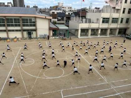 10月18日(火)1時間目、4年生は体育で演技の練習をしていました。