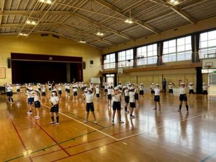 10月18日(火)1時間目、3年生は体育館で演技の練習をしていました。