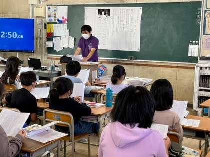 10月20日(木)3時間目、4年2組は国語で「くらしの中の和と洋」を学習していました。全文シートを読んで、内容のおおよそをとらえようとしていました。