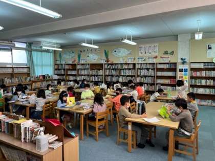 10月26日(水)3時間目、1年2組は図書の時間で静かに本を読んでいました。