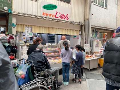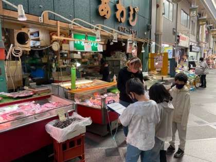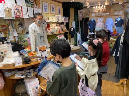 10月26日(水)1時間目、3年2組は総合で粉浜商店街のお店にインタビューに行きました。