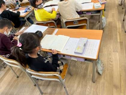10月28日(金)1時間目、1年1組は国語でノートへ視写をしていました。