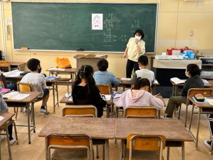 11月2日(水)1時間目、3年2組は算数で3けたの数にかける計算をしていました。学級を2分割して少人数で学習していました。