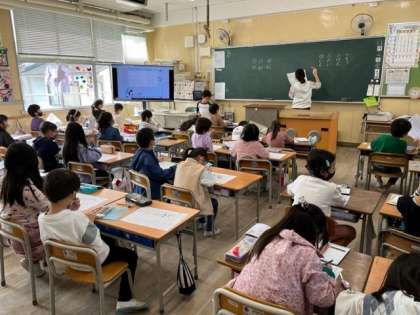 11月4日(金)3時間目、1年1組は国語で、「かぞえうた」を学習していました。物の数え方を学習していました。「とう」「けん」「だい」「にん」「わ」「はい」「ひき」「まい」・・・いろいろあるなあ。