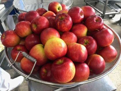 りんごは冬の寒さが厳しい地方でよく育つ果物です。甘みが強くて蜜がたっぷりある「ふじ」や、ほんのりとした甘みがある「つがる」などの種類があります。