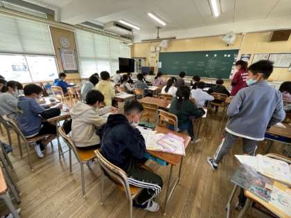 11月4日(金)3時間目、6年1組は算数で比例と反比例の力だめしをプリントでしていました。