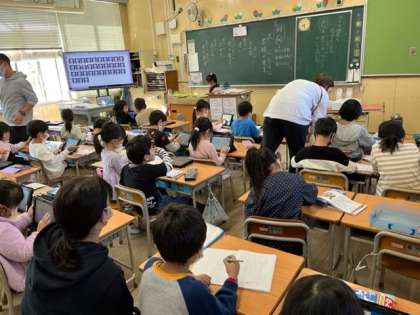 11月7日(月)1時間目、1年2組は漢字ドリルの練習をした後、「心の天気」をしていました。